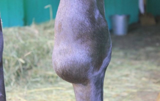 - נפיחות מופיעה על המפרק, ולאחר זמן מה הפרה מתחילה לצלוע.