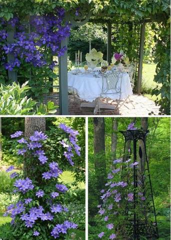 אפשרות מצוינת לעבים. ליאנה עם פרחים כפולים גדולים מגיעה לגובה של 10 מטרים.