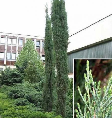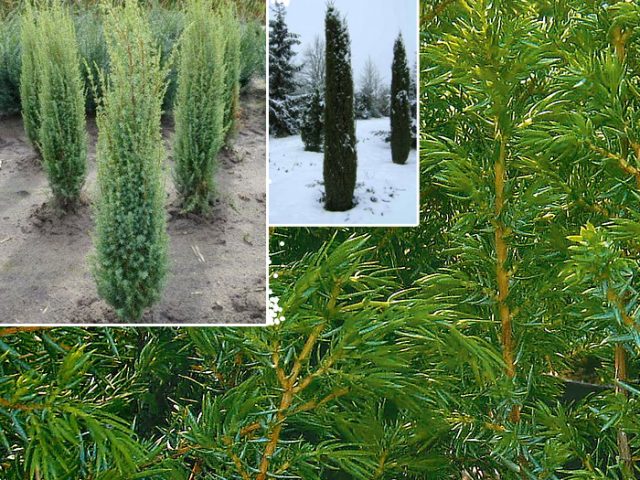 - היברניקה (היברניקה) עם כתר צפוף צר ומחטים כחלחלות;