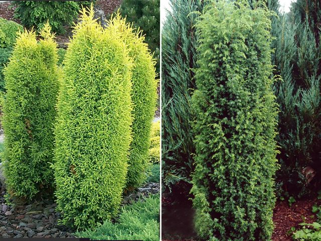 - ארנולד (ארנולד) - עמודים עם מחטים ירוקות, לפעמים כחלחלות;