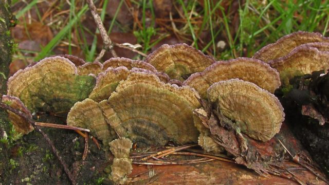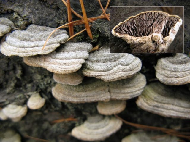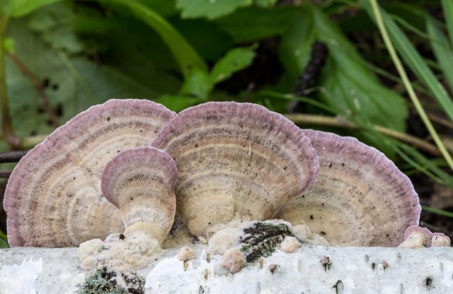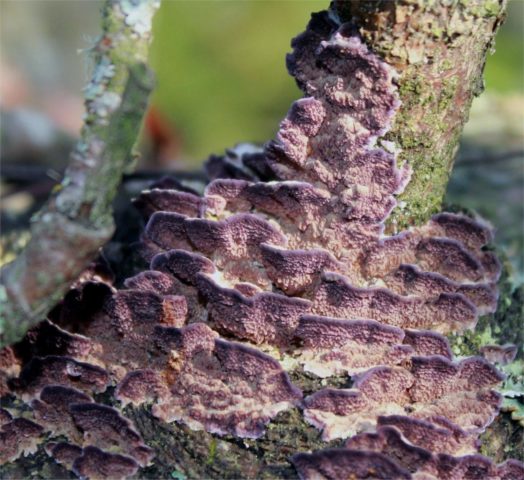 - סגול חום - דגימה שנתית בלתי אכילה. צומח על עץ מת ולח של יערות מחטניים. גורם לריקבון לבן כשנדבק. גוף הפרי ממוקם בדגימות יחיד או במשפחות מרוצפות אריחים. המשטח קטיפתי, צבוע בצבע לילך בהיר עם קצוות לא אחידים. במזג אוויר רטוב הוא מכוסה באצות. העיסה סגולה בהירה, כשהיא מתייבשת, היא הופכת לצבע חום-צהוב. פירות ממאי עד נובמבר.