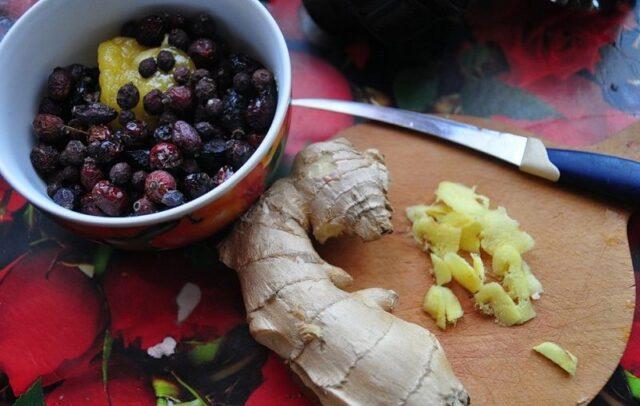 ניתן לחלוט תה ורדים וג'ינג'ר בעת שיעול, זה מקדם מכייח