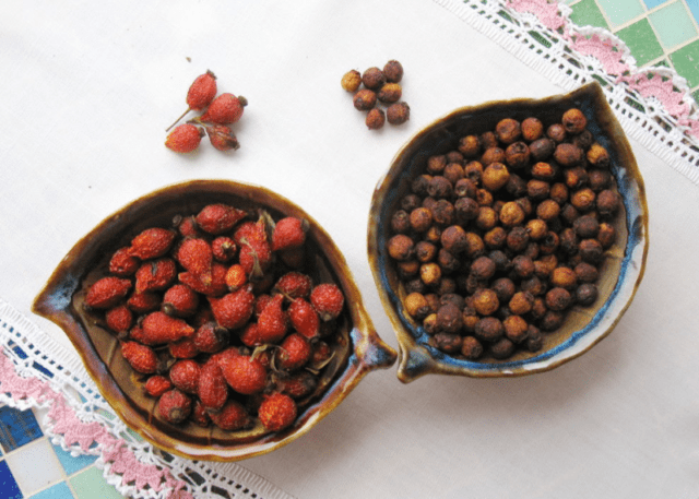 ירכי ורדים מיובשות עם פטל ודומדמניות לחסינות