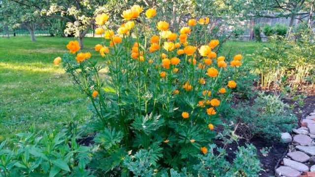 פרחים כדוריים, לא גדולים מדי (עד 4-5 ס"מ) של בגד הים של אלטאי נאספים מ- 10-20 גביעי צהוב זהובים-צהובים או כתומים עשירים בביצה רחבה, שיש להם ברק אדמדם בחוץ. התרחב בבסיס והצביע על קודקוד עלי הכותרת הצפיים של גוון כתום-אדום עסיסי. אנתרס בצבע כהה יותר הם סגולים. בפרח שנפתח לגמרי של האש האלטאי נראה אבקנים שחורים היטב.