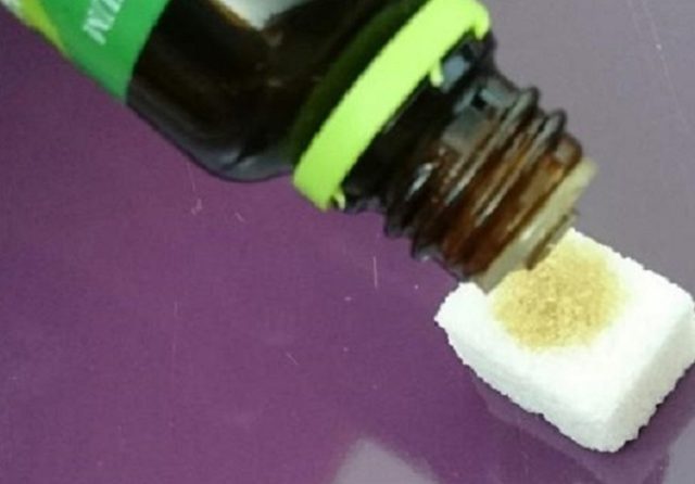 לפני השימוש הפנימי מוחלים טיפת שמן אשוח על הסוכר