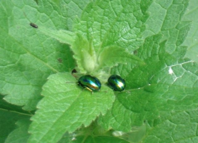 - חיפושית עלים - חרק מופיע בימים החמים הראשונים, כאשר טמפרטורת הלילה אינה נמוכה מ- 14 מעלות צלזיוס. חיפושיות ניזונות מעלווה, ביצים מוטלות בתפרחות. אתה יכול להיפטר מהמזיק בעזרת חליטת פלפל. לשם כך, 150 גר 'פלפל חריף טחון מדוללים ב -10 ליטר מים.