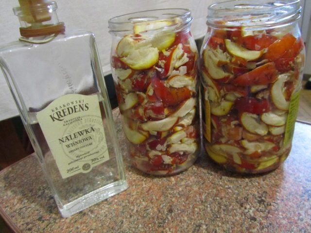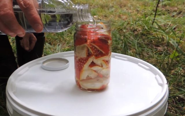 - הדייסה שהתקבלה מונחת בצנצנת זכוכית קטנה ונמזגת עם וודקה, עליה לכסות את עיסת הפטריות ב -1 ס"מ מלמעלה.