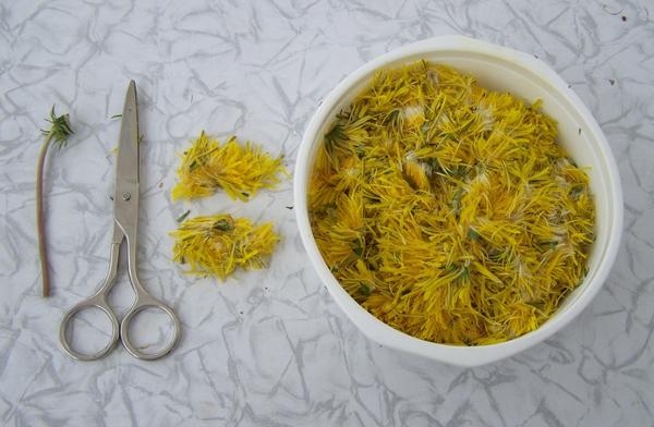 מכניסים את פרחי השן הארי היטב לצנצנת של 3 ליטר, מפזרים שכבות סוכר שיזדקקו לכ -1.5 ק"ג. השאירו לחליטה עד שייצא מיץ דביק בצוואר הצנצנת. לשתות 1 כפית. 50 מ"ל מים חמים לכאבים בכבד, כולליתיאזיס, כאבי כבד ומעי.