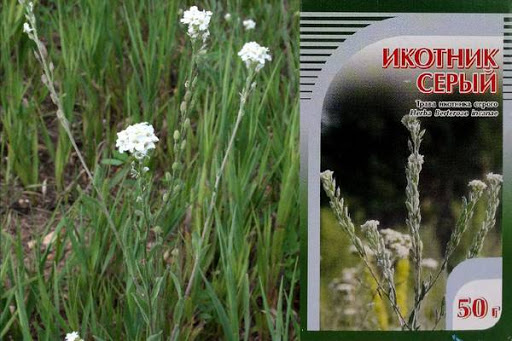 איקוטניק אפור (Berteroa incana L) הוא בן למשפחת הכרוב. בכל יישוב לתרבות יש שם פופולרי משלה. הצמח ידוע כמרווה, ערמון לבן, פרחים לבנים. מופץ בכל אזורי האקלים למעט הצפון הרחוק. זה נחשב לעשב שדה.