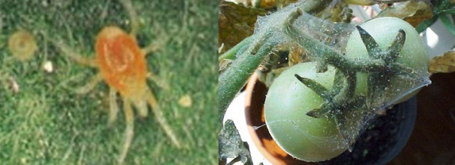 בתנאים בהם אין גשם לאורך זמן, ומזג האוויר הוא בטמפרטורה גבוהה במיוחד, מופעל מזיק נוסף - קרדית עכביש. הוא מטפיל על חלקו הפנימי של העלה, עוטף אותו בקורי עכביש. כדי לשמור על תפקידיו החיוניים, הקרדית מוצצת את המיצים מעלים העגבנייה, וכתוצאה מכך צלחות העלים של העגבנייה הופכות חומות ויבשות.