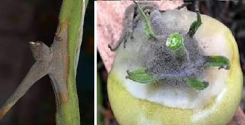 הביטוי למחלת עגבניות זו הוא פריחה אפורה על גזע העגבניות.עם התפשטות הנקודה האפורה, הגבעול מפסיק להכניס חומרים מזינים ולחות, ותורם למוות של רקמות האיברים הצמחיים של הצמח. התפתחות נוספת של המחלה מתבטאת בהופעת ציפוי אפור על העגבניות עצמן.