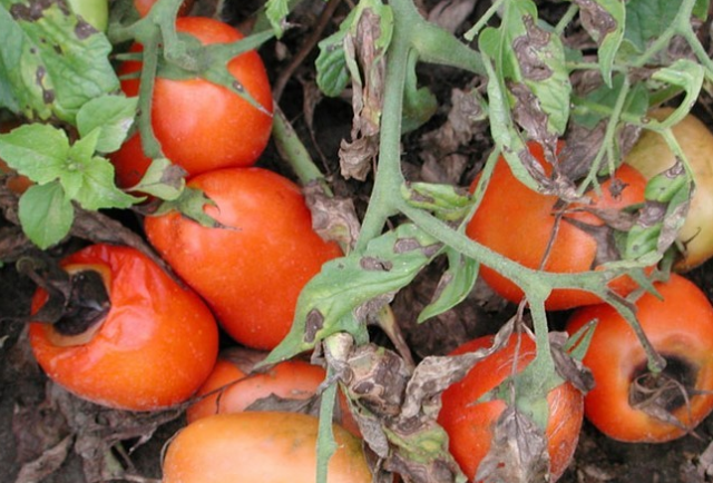 האדמה בה גדלו העגבניות הנגועות חייבת להיחרט בתמיסה של 2% של התכשיר "Fitolavin-300".