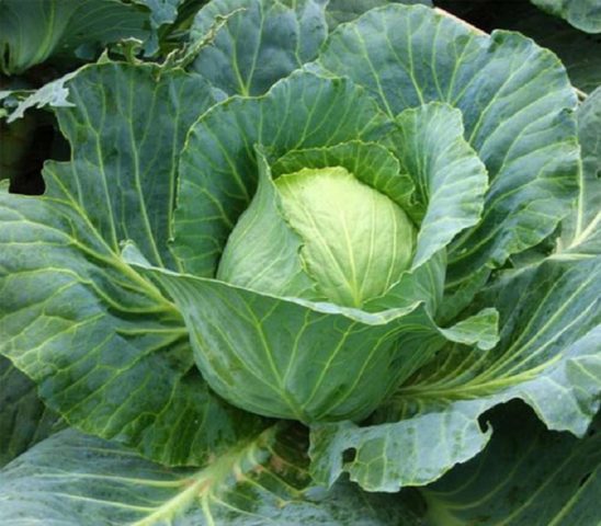 - לוחות העלים של הכרוב חלקים, הקצוות בעלי שיניים גלי. על העלים התחתונים נוצר עלי כותרת באורך 6 ס"מ. וריד העלה דומה לצורת חצי מניפה. אורך העלים 55 ס"מ, הרוחב כ 40 ס"מ.