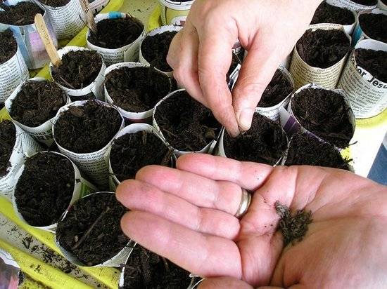 המכולות נשפכות במים, שקעים נעשים לא יותר מ -1 ס"מ. זרעים מונחים בהם. אם הזריעה מתבצעת במשתלה משותפת, אז במרחק של 3-4 ס"מ. כאשר מגדלים שתילים ללא קטיף, 2-3 זרעים ממוקמים בכל כוס, קלטת או טבלית כבול. מכסים בזכוכית מעל ליצירת אפקט חממה. הכוס מוסרת 5-6 ימים לאחר הנביטה.