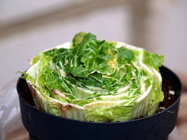 בשלב הבא עליכם למדוד כ -6 ס"מ מתחתית ראש כרוב הפקין ולהשתמש בסכין חדה כדי להפריד את החלק התחתון משאר הראש בחיתוך רוחבי. רצוי לשטוף אותו בנוסף מתחת למים זורמים מפני זיהום אפשרי. החלק המנותק העליון יכול להתפורר לסלטים ולהשתמש בו להכנת מנות אחרות. והחלק התחתון עם התחתית ישמש חומר שתילה ראשוני לגידול עלים ירוקים, ואולי, קבלת ראש שלם של כרוב פקין.