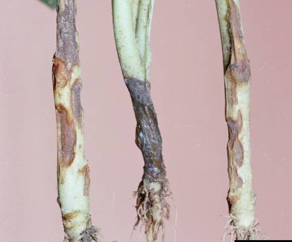 שתי המחלות הללו מופיעות לעיתים נדירות למדי, מה שלא ניתן לומר על הרגל השחורה. אם תנאי הטיפול לא השתנו, והצמחים נפלו לפתע, אז הדבר הראשון שיש לבדוק הוא בסיס גזע הצמח. אם יש כהה על פניו עם גושים קטנים באמצע, זוהי רגל שחורה ערמומית.
