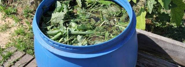 מלאו מים והחדירו אותם למשך 1-2 שבועות. ואז ליטר 1 של עירוי זה משמש להשקות שיח עגבניות אחד. דשן זה מכיל כמעט כל מה שעגבניות צריכות ובצורה הניתנת לעיכול ביותר.