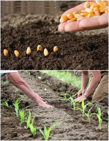 - החור מעמיק ל -5 ס"מ, המרחק בין התירס נעשה לפחות 30 ס"מ, בין השורות - 50-60 ס"מ.