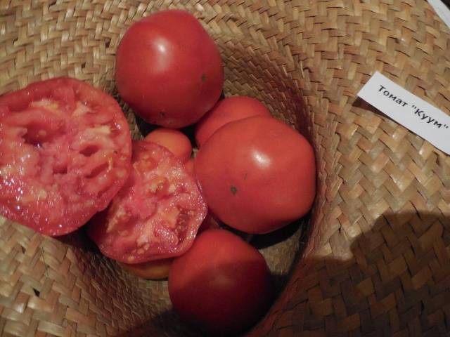 - הטעם של עגבניות מזן הקום מדורג מצוין על ידי מרבית הגננות. הפירות הם לא רק מתוקים, אלא סוכרים, עם עיסת אבטיח, וזה גם דבר נדיר בקרב עגבניות בשלות מוקדמות.
