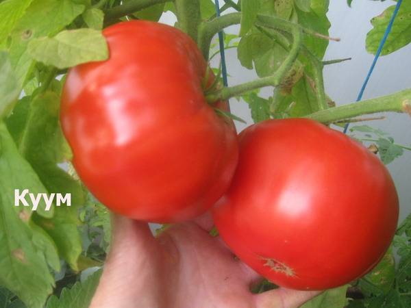 - פירות העגבניה קום שייכים כמובן לקטגוריה של עגבניות בקר גדולות ואפילו פירות. וזה נדיר מאוד עבור זנים שמתבגרים מוקדם. אחרי הכל, המסה של העגבניות אפילו הקטנות ביותר מזן זה היא כ- 300-400 גרם, והגדולות בהן יכולות להגיע עד 1000 גרם.