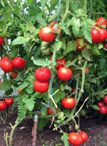 על המיטות בחממה ניטעים יותר משלוש עגבניות למטר רבוע. יש לשתול אותם ליד הסורג או כל תמיכה אחרת ולקשור אליהם מיד. גיבוש וקשירת שיחים יהיה אחד ההליכים העיקריים לטיפול בעגבניות, שכן אשכולות גדולים עם פירות ענק דורשים בירית נפרדת.