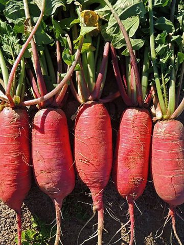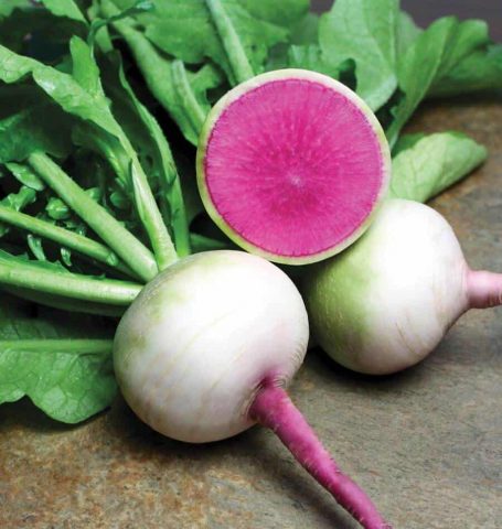 צנון "בשר אדום" - תוצאת עבודתם של מגדלים יפניים. זה נדיר בעלילות אישיות. הפירות גדולים וצפופים. הקליפה בצבע בורדו וורוד בהיר. העיסה אדומה כהה. יבול השורש עגול או גלילי, במשקל 250 גרם. אין מרירות בטעם, מאפיינים גסטרונומיים כמו צנון.