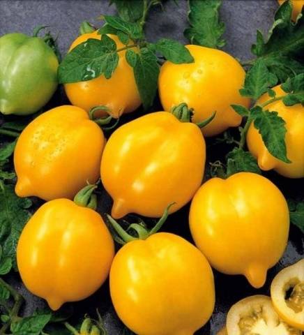 - צבע הפרי הוא צהוב לימון, הטעם טוב מאוד, מכיוון שתכולת הסוכר בעגבניות מגיעה ל -5%. הם צפופים מאוד ומועברים היטב. עגבניות עם פירות צהובים מכילות קרוטן גבוה. הם מתאימים למאכל למי שאלרגי לעגבניות אדומות.