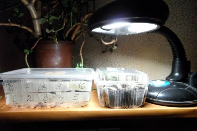 - כאשר יורה הופיעו, מיכלים מונחים על אדן החלון או מתחת לפיטולמפ. הנבטים זקוקים לתאורה למשך 10 שעות;