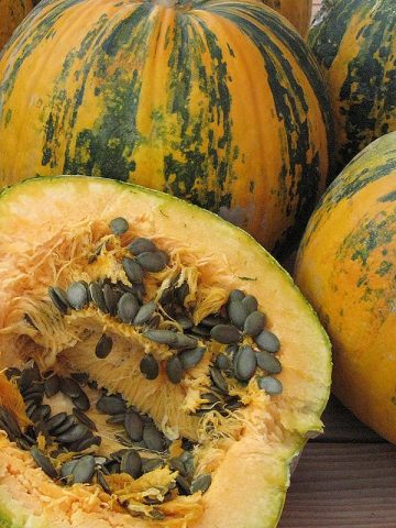 דלעת גימנספרם סטירית (אוסטרית) מגיעה מהמחוז האוסטרי באותו שם. נוצר עבור תעשיית המזון, זרעי דלעת סטירניים גימנסופרמיים מכילים ריכוז גבוה של שמנים. התרבות מותאמת לתנאי מזג האוויר ברוסיה. גדל בקנה מידה תעשייתי ובעלילות אישיות. עיסה עם אחוז סוכר נמוך, עם ריח אגוזי עדין.