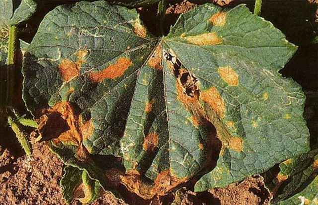 - חיידק... ניתן לזהות את המחלה על ידי כתמי אמרלד כהים בעלי צורה לא סדירה, הנמצאים בין הוורידים בצלחת העלה. ללא טיפול הכתמים הופכים חומים-חומים, מתייבשים ויוצרים חורים בעלי צורה לא סדירה. הטיפול מורכב מהסרת האזורים הפגועים ועל ריסוס הצמח בתכשירים המכילים נחושת.