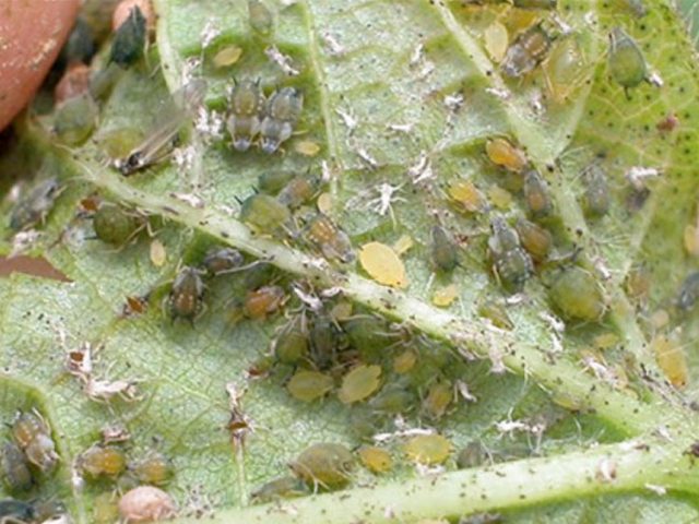 - קרדית עכביש... ניתן לזהות את המזיק על ידי הרשת הדקה שעל העלה. החרק מוצץ את המיץ מהצומח, וכתוצאה מכך מופיעים כתמים צהובים על העלה, הוא מתייבש ונופל. כדי להרוג את הקרציה, השתמשו בעירוי אלקליין בצל או שום או בקוטלי חרקים רחבים.