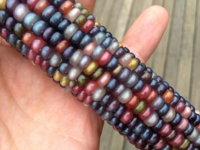 הצבע המקורי של האוזניים הוא היתרון העיקרי של המגוון. אי אפשר לחזות שילובים של דגנים רב צבעוניים, שלעתים קרובות אינם שייכים לאותה סולם צבעים. על אותו קלח ניתן למצוא צבע כתום כחול, אדום, לבן, צהוב זהוב, כתום בהיר עם גוונים רבים נוספים.