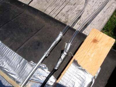צינור PVC מחובר לכניסה ולמוצא של הסליל. מצד אחד, מים קרים יסופקו, ומצד שני מים חמים ייצאו.