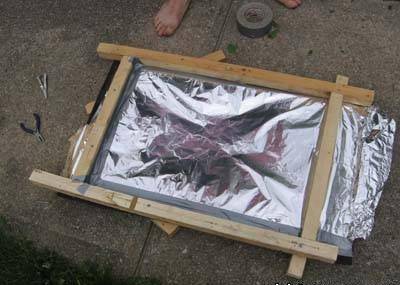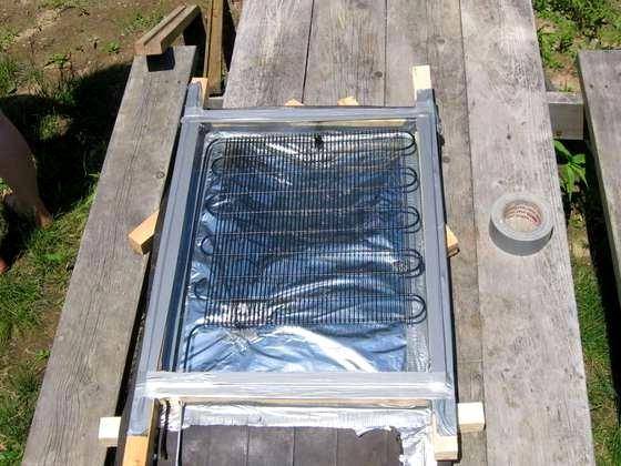 ייצור דוד מים מתחיל בהרכבת המסגרת. מסגרת מלבנית נופלת מהסורגים. גומי ממוסמר בצד אחד. רפלקטור ומחליף חום מהמקרר מונחים בתוך המסגרת מנייר כסף. הסליל מקובע למסגרת עץ, וכל העניין מכוסה בזכוכית. התברר שזה סוג של סוללה סולארית.
