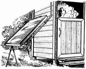 דוד המים הפשוט ביותר למקלחת יגיע ממקרר ישן. המים יחוממו בסליל באמצעות אנרגיה סולארית. לעבודה תצטרך להוציא את מחליף החום פריאון מהמקרר, להכין את הסורגים למסגרת ולרדיד.