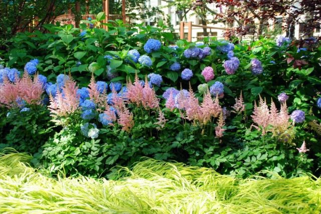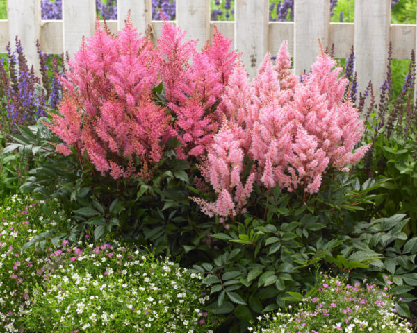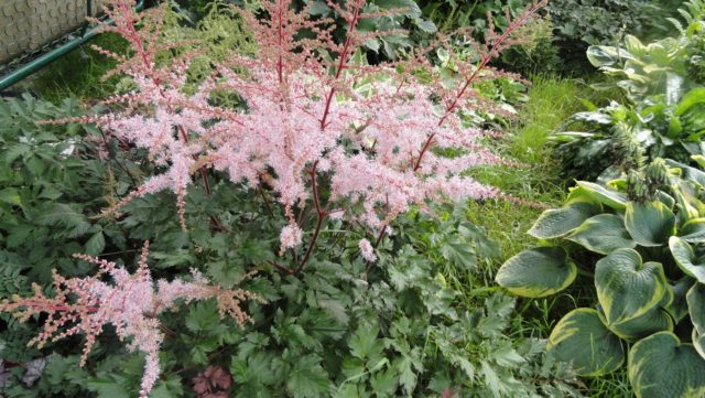 Astilba Luk et Mi נטועים בערוגות פרחים, ערוגות פרחים, מדשאות
