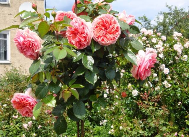 אורך הצילומים מגיע ל -2 מ ', הפרחים הלבנים-ורודים הכפולים בקוטר 5 ס"מ הם יפים מאוד.החיסרון היחיד הוא שהוא פורח פעם אחת, לעומת זאת, למשך חודש.