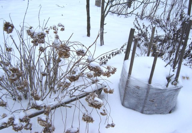 כדי שמערכת השורשים לא תסבול מכפור, עליכם לכסות את הצמח בענפי ספונבונד או אשוחית