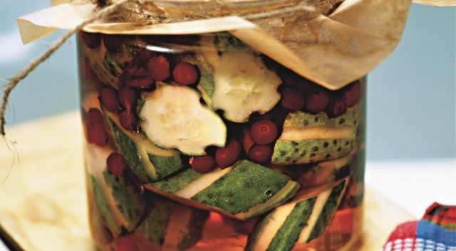 קצירת מלפפונים עם חמוציות ודבש לחורף
